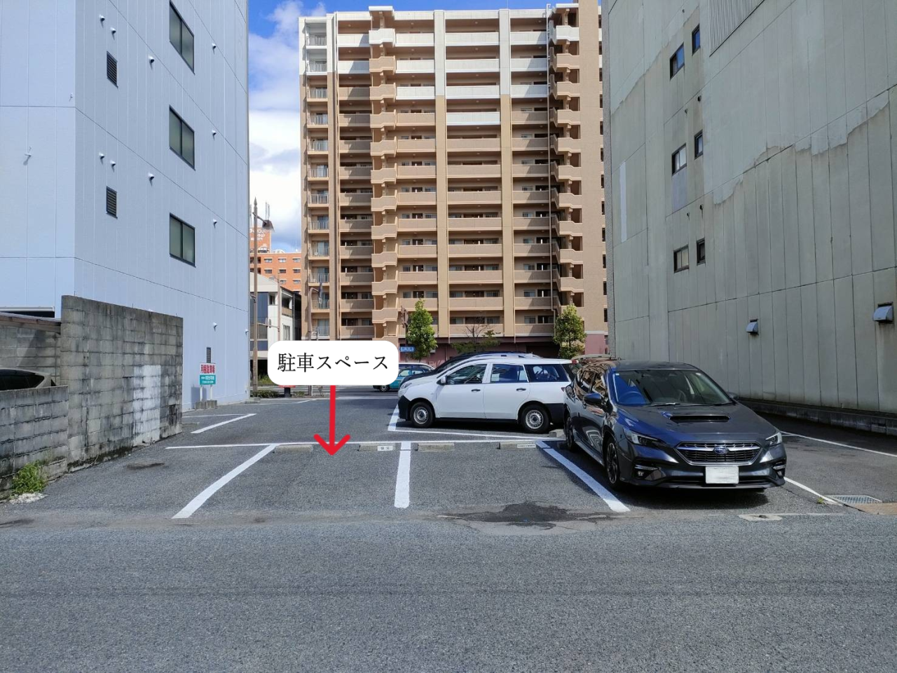 岡山明星法律事務所北側の駐車スペースです。 大通りから直接入ることはできないので 裏の道よりお入りください。